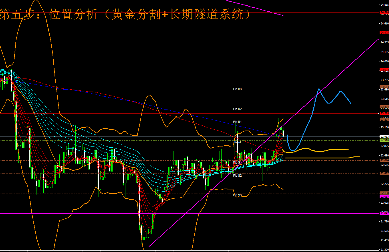 2、位置研判。黄金分割轴心点指标系统展示日内三大支撑分别为22.61-22.42-22.13,上方阻力为23.20-23.40-23.68.中轴22.91.今天银价或延续昨日的多头强势。