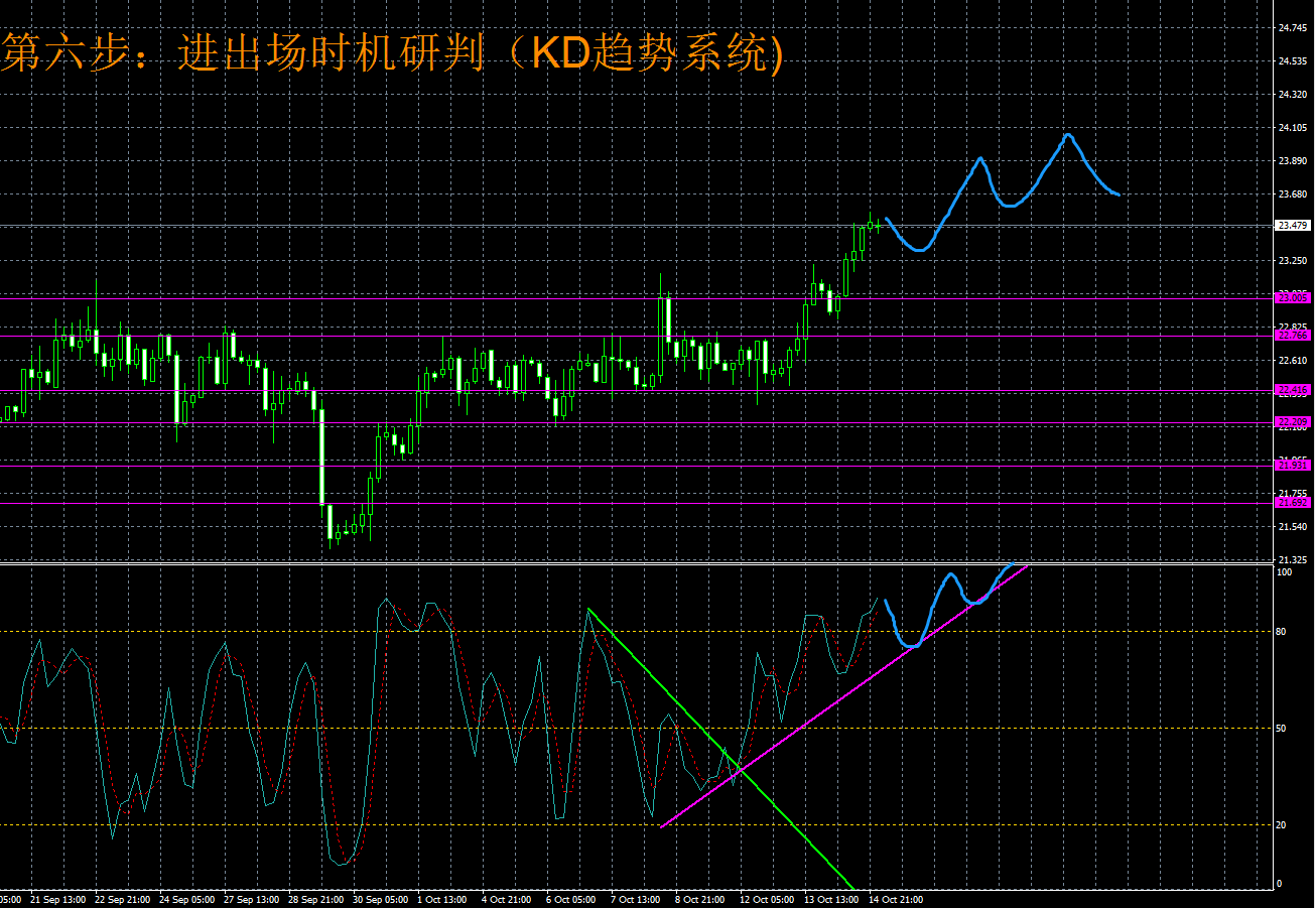 3.时机分析。4小时kd曲线过去两天形成了明显kd趋势,目前银价处于超买区域80刻度继续上升,显示多头主导行情的特征。预计kd曲线继续维持在80刻度上方运行一段时间,持续消化多头的情绪。