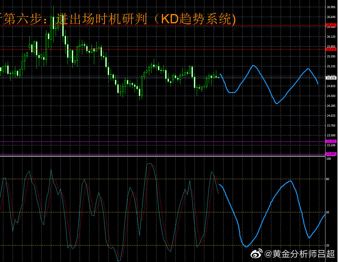 3.时机分析。4小时kd曲线昨日从20刻度附近快速拉升上触及80刻度,目前在该位置掉头向下。预计kd曲线将在20-80刻度之间大幅度上下穿行,提示白银的震荡运行格局。