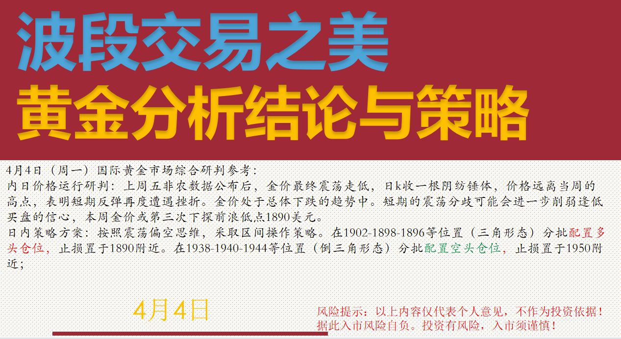 4月4日(周一)国际黄金市场综合研判简约版