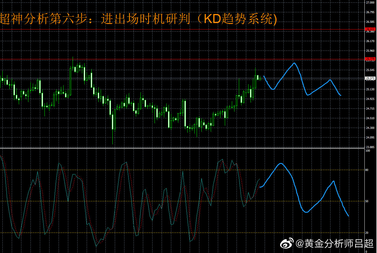 1、趋势分析。昨日白银先跌后涨,再度破位上涨,冲高至25.60美元附近,日k线再收一根中阳线,连续第五个交易日收阳。而且震荡不断加大,显示了多头对上方压力的挑战。现在银价已经回到了上一个大跌的起点附近。既显示了短期多头反攻力量的强劲,也意味着短期反弹将进入重大阻力区域。多空分歧将再度加大。昨日全球最大白银ETF--iShares Silver Trust在9次增持后,首次出现减持。这个信号值得大家注意。大家要记住一个规律,在下跌过程中,增持不一定能够改变跌势。经常出现边跌边增持的现象。但在上涨过程中,如果出现减持,一定会立即被市场注意到,从而削弱多头买盘的信心,引发集中抛售。因此,昨日的etf的减持,反映了短期银价的强势反弹已经逐渐接近极限,不宜过度追涨。在上周阳线的提示止跌信号下,本周银价已经大幅拉升至前一周大跌的起点,预示着力量已经基本耗尽,接下来行情将进入震荡运行的状态,而不是继续冲高。意味着银价将在更大的区间震荡运行。银价震荡的上限在25.80-26.00美元区间。而下方24.80-25美元则构成有效的底部支撑。