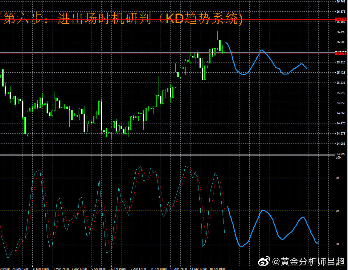 3.时机分析。4小时kd曲线昨日在80刻度受阻后掉头回落,显示了银价的冲高回落行情。当前kd曲线正处于向下运行阶段,预示着银价还有进一步下行的空间。直至kd曲线探及20刻度转折后才会企稳反弹。