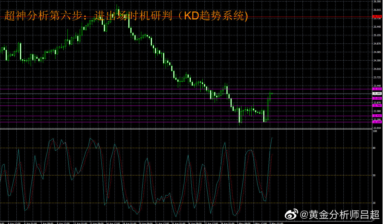 3.时机分析。4小时kd曲线昨日探至20刻度附近后迅速拉升,目前探入80刻度一线,预计短期回撤至50刻度附近后仍然继续保持向上的状态。提示银价由跌转涨的变化。