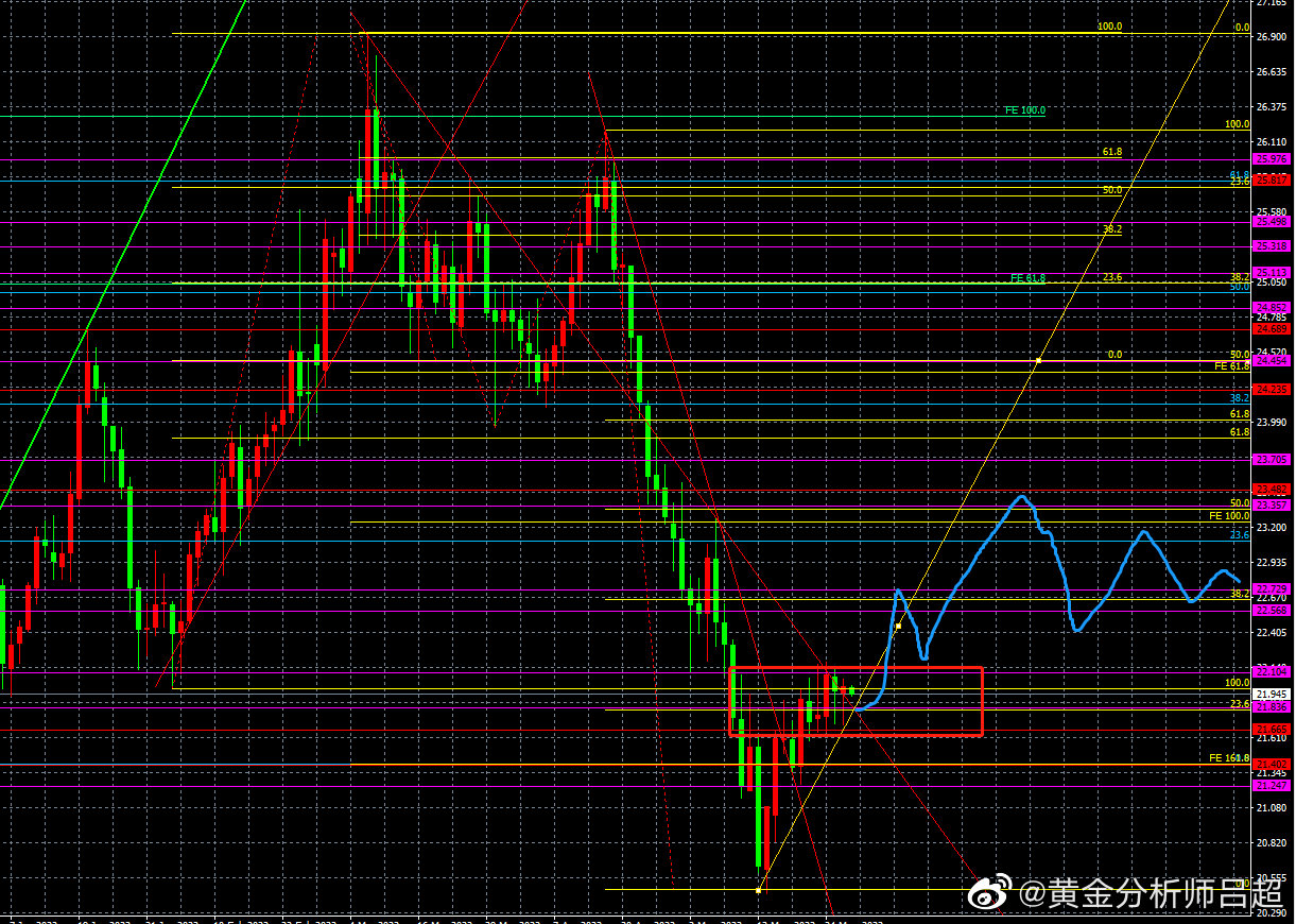2、位置研判。黄金分割轴心点指标系统展示日内三大支撑分别为21.78-21.70-21.57,上方阻力为22.09-22.13-22.26.中轴21.93。四小时综合系统指标继续呈现震荡特征,符合最近几天的震荡格局。但相对于前一个波段的持续下跌,当技术指标走平,则意味着未来转向上涨的可能。