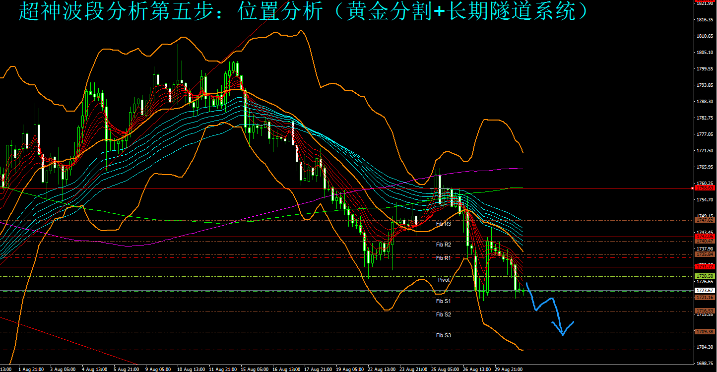 2、趋势分析:昨日黄金市场总体受空头氛围主导,亚欧市场走势震荡,但美洲时段快速下挫,使得金价跌回至1730美元以下,吞没了周一的反弹空间,日k线收一根实体较长的中阴线,形成了对前浪低点的有效突破,确认了第三驱动浪行情的持续性。现在金价距离7月月线低点1680美元仅剩一步之遥。在8月的最后一天,空头极有可能尝试挑战一次。毕竟八月行情是先涨后跌之势,说明空头最终占据了主导地位。现在不仅仅美联储官员一致坚定加息,与此同时美联储9月缩表步伐将加速。