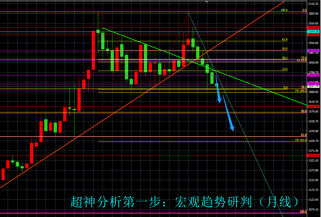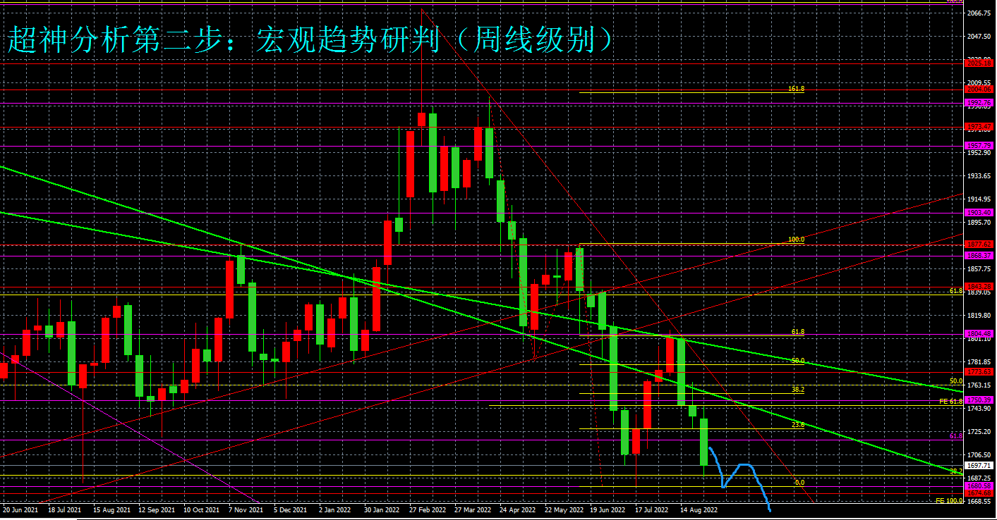 2、趋势分析:昨日黄金市场呈现空头主导行情,金价加速下跌至1690美元附近后,才出现小幅反弹,日k线收一根光头带脚的中阴线,录得日线三连阴走势。金价重新跌回至1700美元关口以下。至此,上一浪多头行情完全被回吐,周线上的四连阳被彻底否定。在月线5连阴的大背景下,周线趋势也回归跌势。此时黄金市场是不能存在太多侥幸心理的,顺势而为,才是王道!!!昨日直跌至1690美元附近,已经说明短期市场完全缺乏买入信心,多头难以抵抗美联储持续强劲加息的压力。1680美元关口,必破无疑。(....内容仅会员可见)