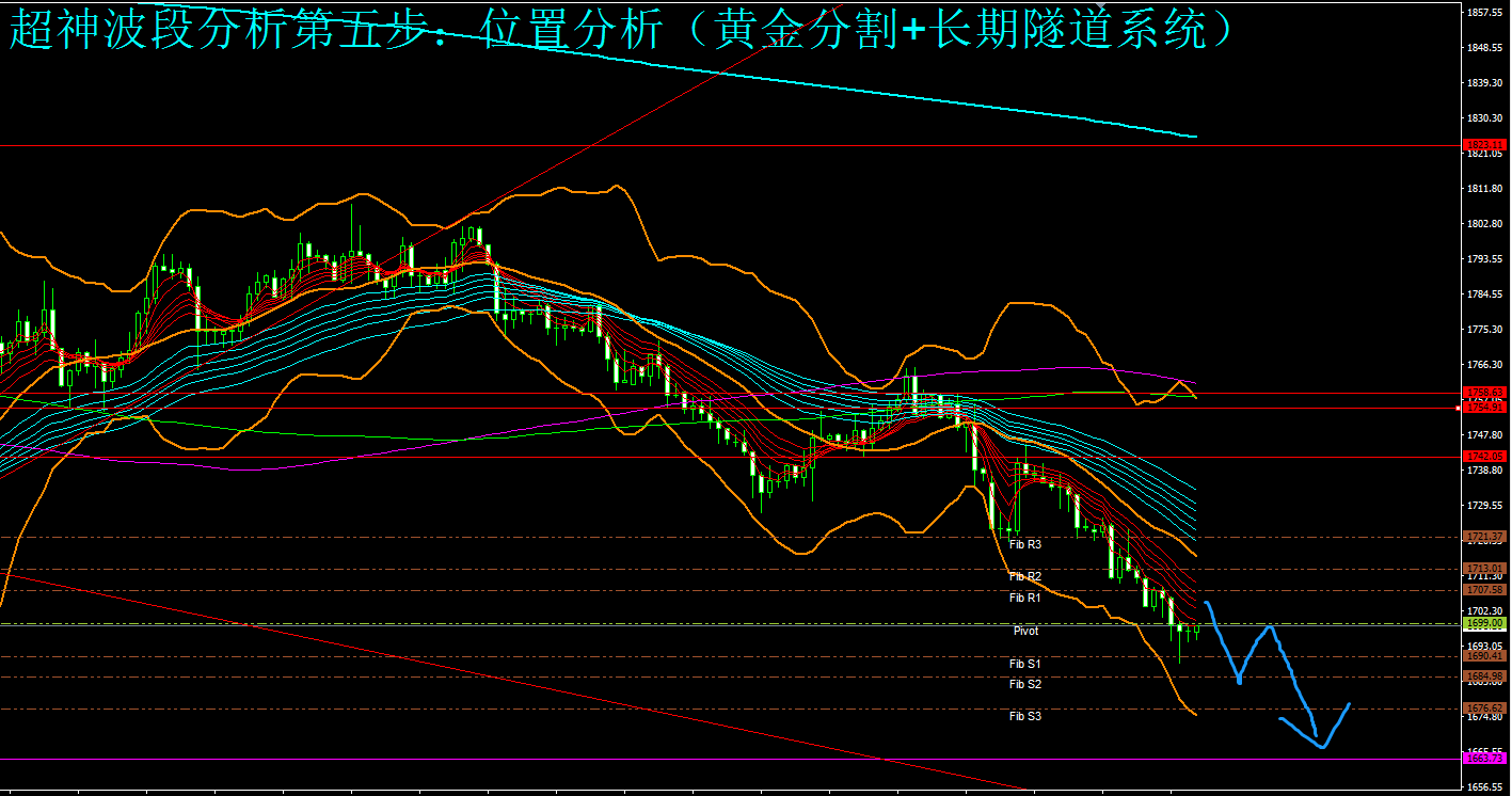 3、位置分析。根据黄金分割轴心点指标系统显示日内重要位置,下方支撑1690-(....内容仅会员可见),上方阻力1707-(....内容仅会员可见)中轴水平1700。四小时综合技术指标总体显示空头特征,布林轨道双轨张口向下,金价挑战中轨压力失败后跌向下轨,(....内容仅会员可见)长线组将发挥多次的阻挡作用。